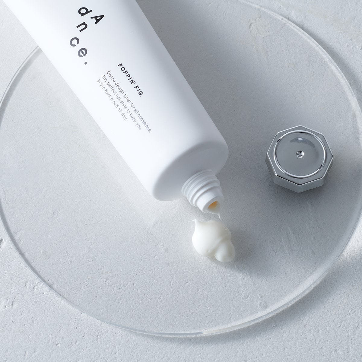 くせ毛やパーマスタイルをスタイリングする際に髪の毛量や髪質によっては、すぐに広がってしまったり、パサついて見える事があります。ポッピンフィグはミルクとバームを合わせたような、程よいホールド力と艶感が出せるのが特徴です。